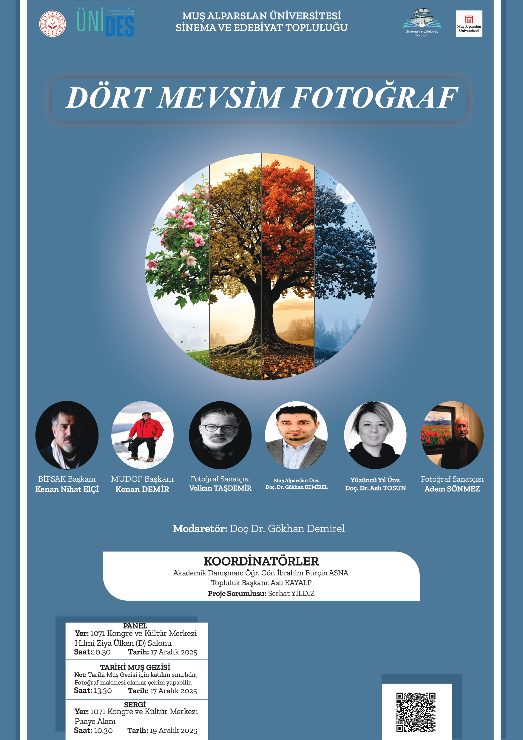 ÜNİDES Projesi olarak kabul edilen "Dört Mevsim Fotoğraf" konulu etkinlik: 17--19 Aralık tarihlerinde "panel,foto-maraton, sergi" kapsamında Sinema ve Edebiyat Topluluğu tarafından yapılacak.