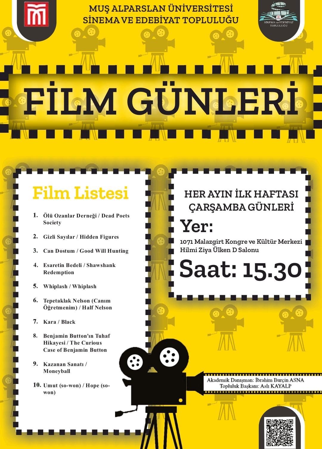 Bölümümüz Topluluklarından olan "Sinema ve Edebiyat Topluluğu"nun yıl boyunca her ayın ilk haftası Çarşamba Günü saat 15 30'da 1071 Kobgre ve Kültür Merkezi'nde "Film Günleri" etkinlikleri başlamıştır.